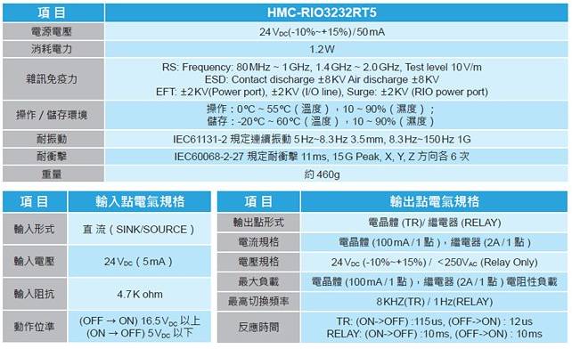DMCNET 混合式遠程數字輸入輸出模塊 - HMC-RIO3232RT5 混合式遠程數字輸入輸出模塊,可提供 DMCNET 主站的主機遠程控制數字信號
